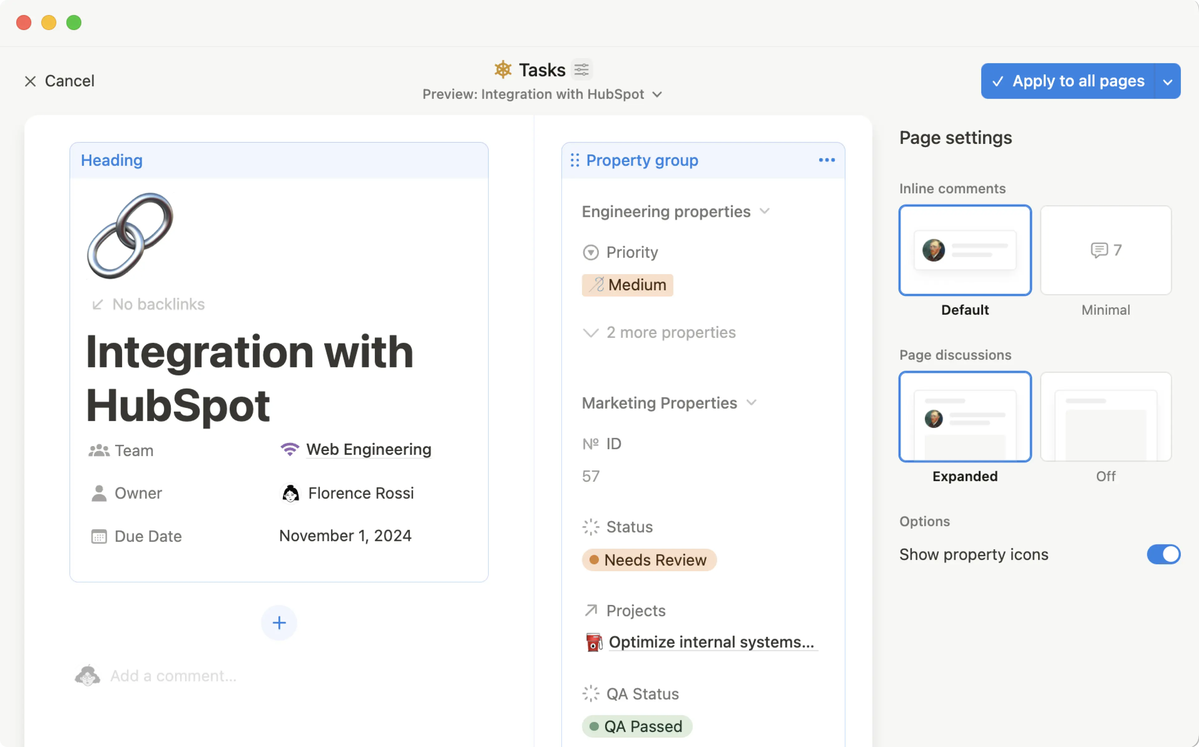 Eigenschaft hinzufügenoder+neben der Eigenschaft ganz rechts.Wähle im angezeigten Menü