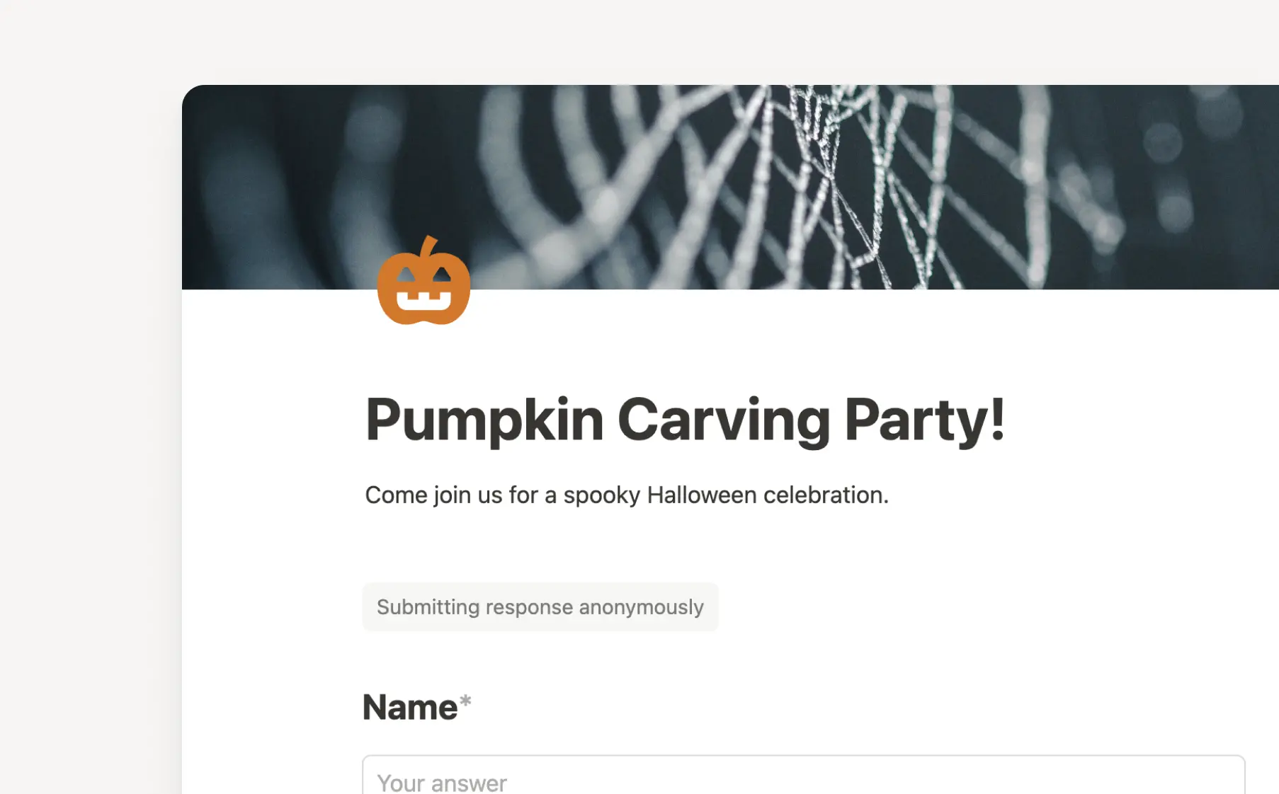 Agrega formularios en línea a tu Sitio de Notion para que las personas puedan enviar solicitudes, confirmar asistencia, completar encuestas y más.