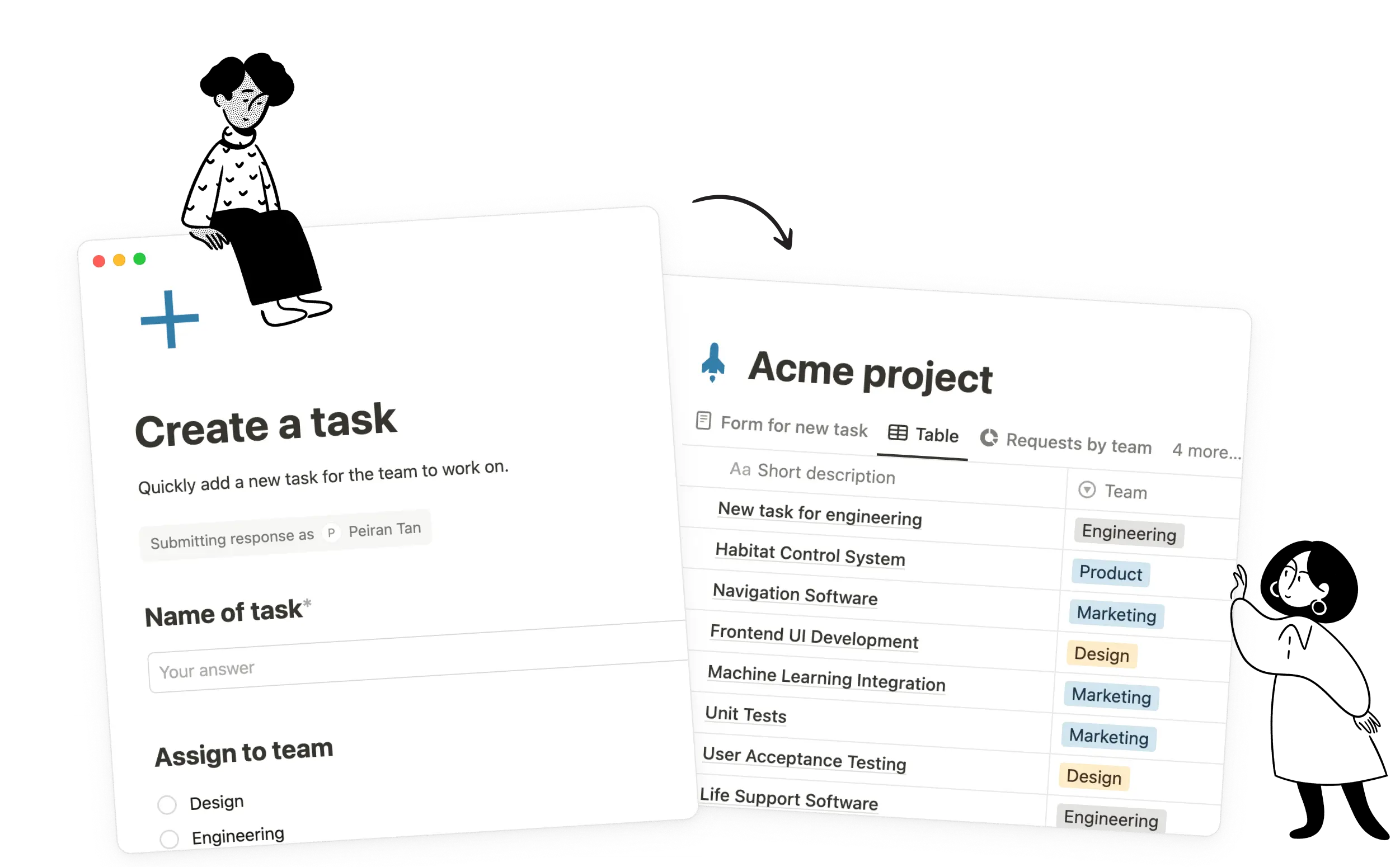 Los formularios agilizan todos nuestros flujos de trabajo al captar las respuestas justo en Notion, donde comienza todo.